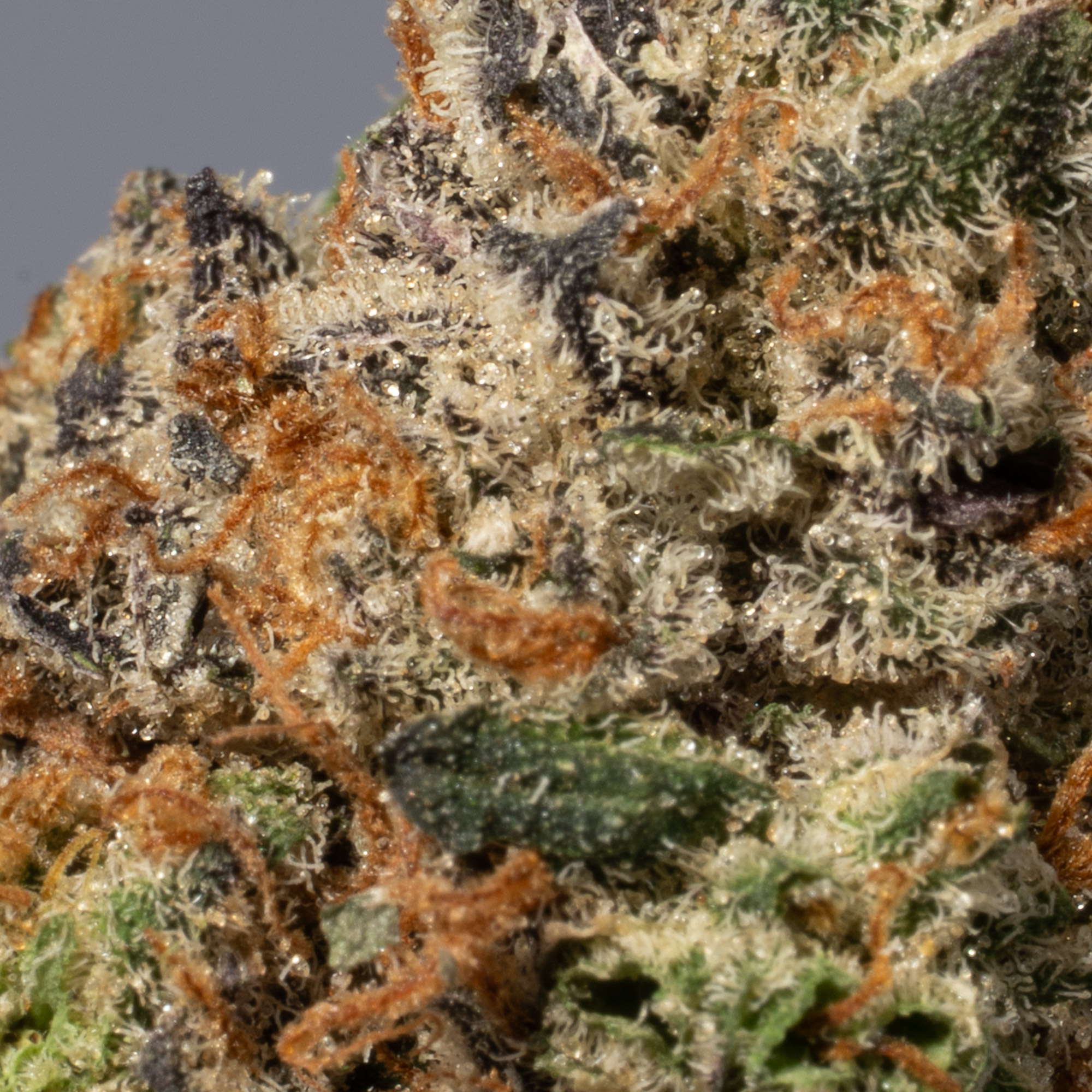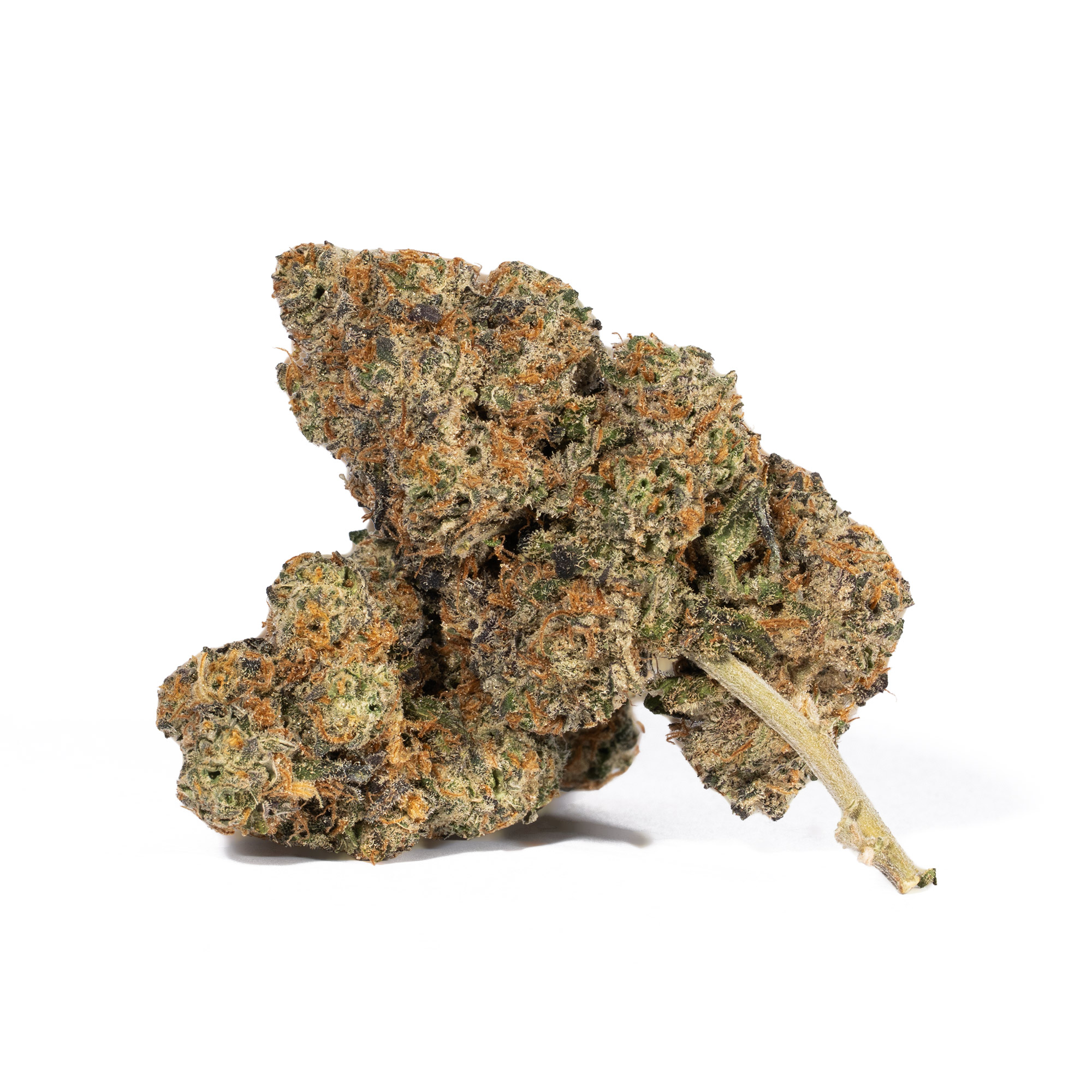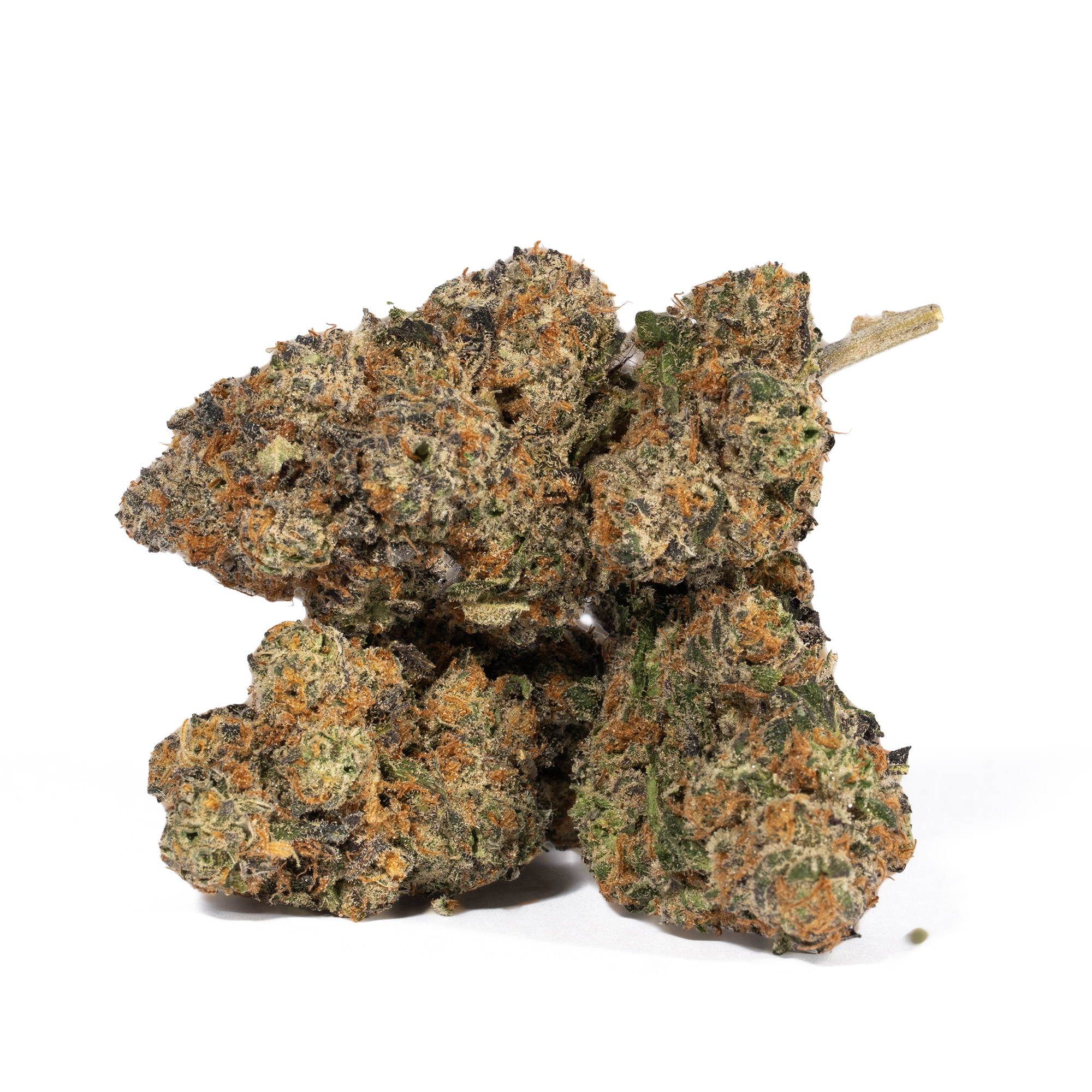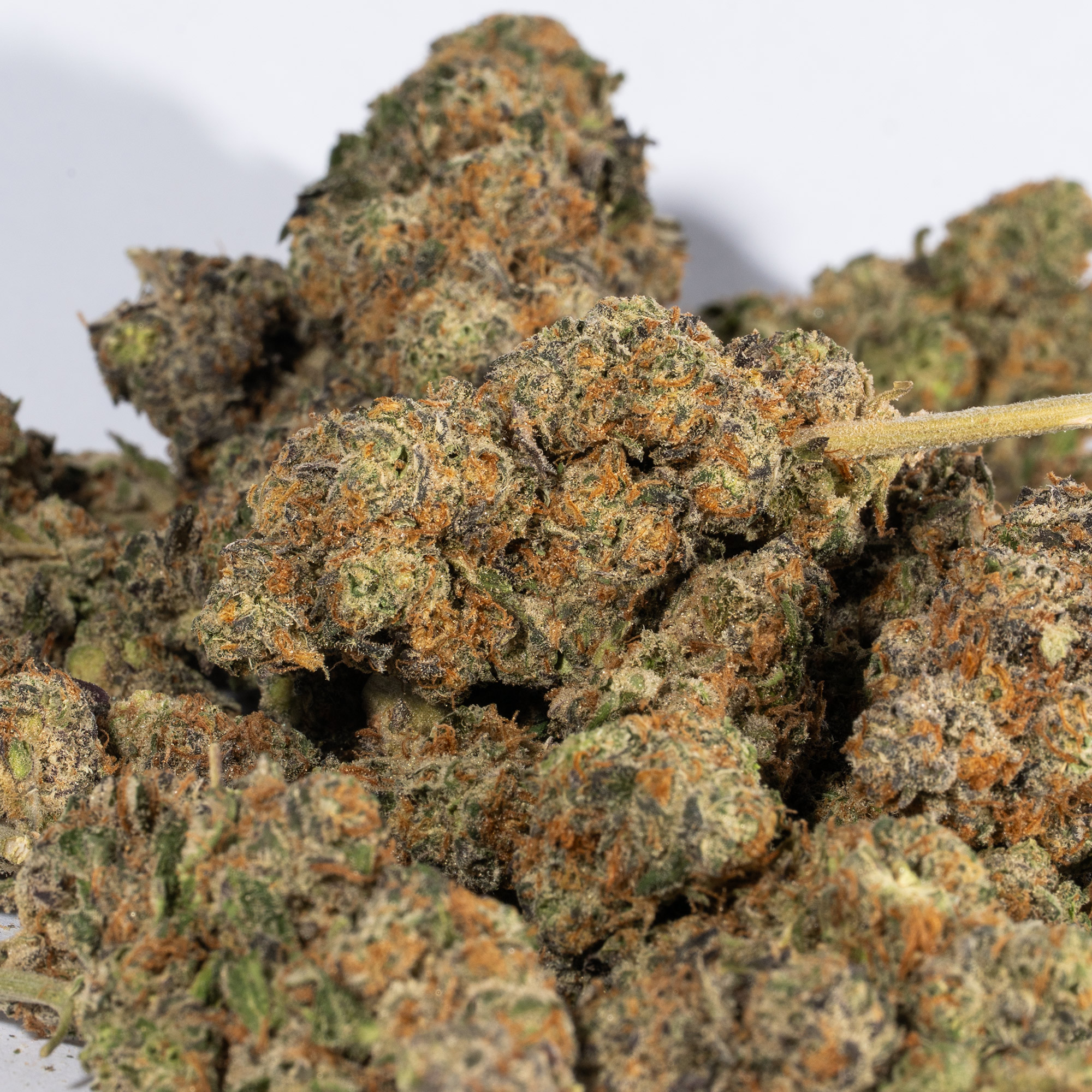 Animal Cookies is an indica dominant hybrid strain (75% indica/25% sativa) created through crossing the infamous Girl Scout Cookies X Fire OG strains. This celebrity child is a favorite of both patients and breeders, packing a super stable grow and a hard-hitting high. The Animal Cookies high comes on fast and hard with a rushing lifted feeling that fills your mind with a happy and unfocused euphoria. As you fade further into this giggly hazy state, a relaxing body high will wash over you, lulling you into a deep state of ease and calm. This combination quickly becomes sedative, leaving you dozing off before you expect it. These effects and its high 21-24% average THC level make Animal Cookies perfect for treating those suffering from conditions such as chronic pain, insomnia, chronic stress, depression and appetite loss or nausea. This bud has a classic sweet nutty cookie flavor with a lightly spicy pungent exhale. The aroma is of earthy pungency and sweet herbs with a sour overtone that intensifies as the nugs are broken apart and burned. Animal Cookies buds have dense long minty green buds with dark leaves, amber hairs and a coating of vivid purple-tinted white crystal trichomes.