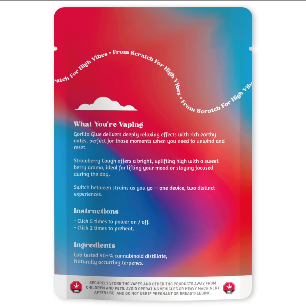 Power meets precision in this bold hybrid combo. The Blast Dual Strain 6g Disposable Vape Pen featuring Gorilla Glue and Strawberry Cough is designed for those who want body relaxation without sacrificing clarity or taste.