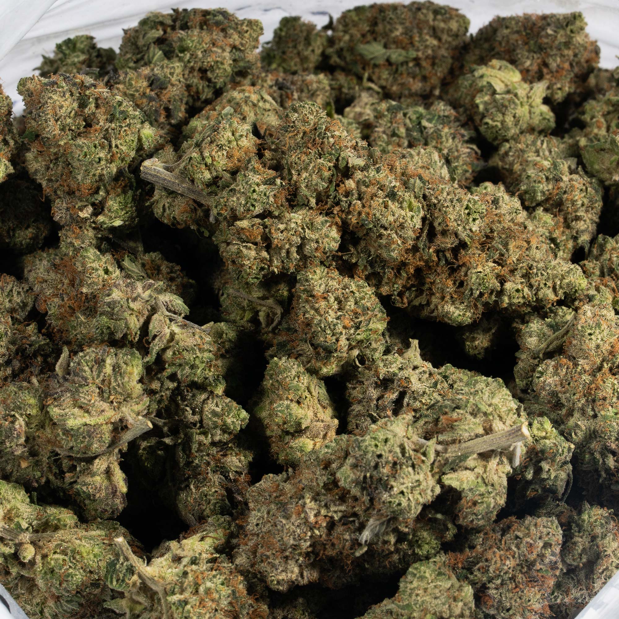 OG Kush, also known as “OGK,” is a slightly sativa dominant hybrid strain (55% sativa/45% indica) with unknown parentage due to breeder secrecy, although it is thought to be a cross of the iconic Chemdawg X Hindu Kush strains. Probably the most famous strain in the world of medicinal marijuana, OG Kush is the perfect hybrid for any indica or sativa lover. It starts almost as soon as you exhale, filling your brain with an uplifted sense of unfocused happiness and ease. You’ll find yourself feeling sociable and outgoing, chatting with anyone and everyone around you, although you may fall in and out of fits of the giggles at times. A pang of hunger comes next, leaving you with a heavy case of the munchies and reaching for anything in sight to snack on. Combined with its 22-24% average THC level, these effects make OG Kush a great choice for treating those suffering from conditions such as chronic stress or anxiety, mood swings or depression, appetite loss or nausea and migraines or headaches. This bud has a classic sour citrusy flavor with hints of woody pine. The aroma is very similar, with a spicy kushy overtone that’s accented by sour citrus, woody pine and pungent dank. OG Kush buds have fat grape-shaped forest green nugs with long, thin orange hairs, golden undertones and a coating of tiny, golden-white crystal trichomes.