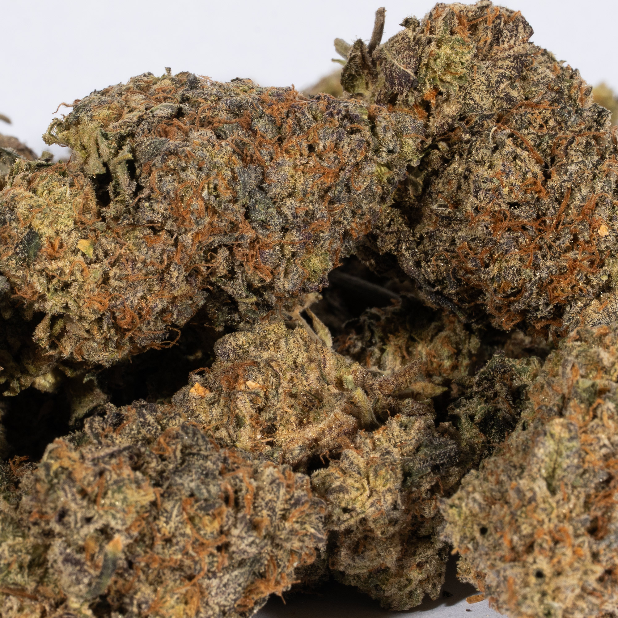 The heritage of this heavy indica is a little uncertain, but it’s known to be a relative and possibly an offspring of the legendary OG Kush, one of history’s most popular strains. Pink Kush carries on the legacy, delivering a potent body high that’s very effective as medical treatment. The effects are calming and intensely euphoric, with happiness and a powerful case of the munchies. It’s a versatile tool for treating anxiety, depression, inflammation, lack of appetite, migraines and other headaches, mood disorders, chronic pain, and insomnia. The sativa/indica ratio of this strain is hard to verify, but appears to be as low as 10:90, meaning strong physical effects. THC tests are scarce, but the few that are publicly available suggest fairly high potency, topping 19%. CBD levels are reportedly much lower, less than 1%, so this isn’t an ideal choice for treating conditions that respond to that chemical, including epileptic disorders. The flavor and aroma of Pink Kush are similar, with notes of pine, wood, and flowers. The strain gets its name in part from the pink hairs that punctuate its green nugs. It’s most popular on the legal markets of the Pacific Northwest and Canada.