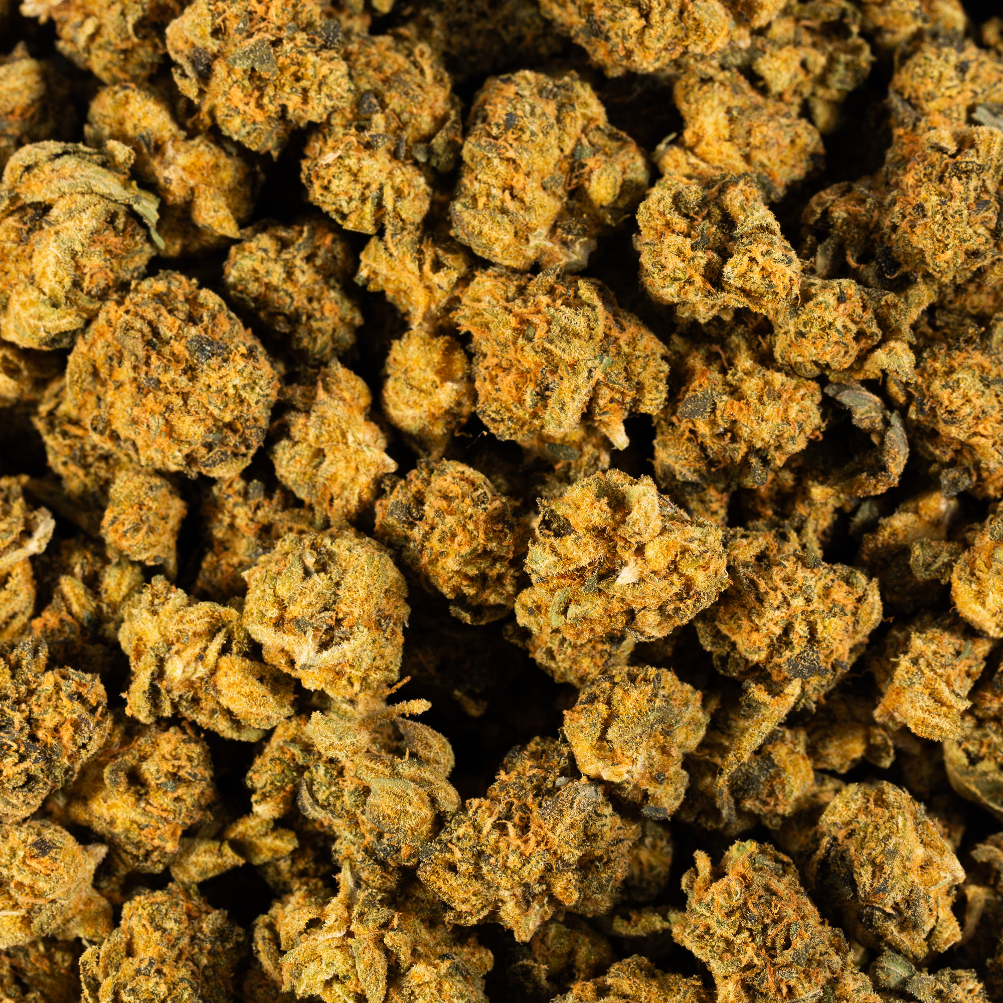 Red Velvet is a slightly indica dominant hybrid strain (60% indica/40% sativa) created through crossing the delicious Lemon Cherry Gelato X Pina Acai strains. Named for its amazing flavor, Red Velvet is the perfect mouthwatering bud for any indica love who loves a great taste with their medicine. Like its namesake treat, Red Velvet has a sweet chocolatey and creamy flavor with hints of fresh vanilla and a bouquet of fresh fruits. The aroma is of sour citrusy lemon with a creamy vanilla overtone that turns a bit spicy and woody as the nugs are broken apart and burned away. The Red Velvet high is just as delicious, with soothing, full-bodied effects that will calm both body and soul. You’ll feel mentally stimulated with a tingly sense that activates your senses, filling you with a boost in creativity and a substantial increase in happiness. As your mood lifts, your body will begin to settle, filled with a deep sense of physical relaxation that is pretty arousing yet soothing. Combined with its high 15-19% average THC level and 0-1% average CBD level, Red Velvet is often said to be perfect for treating conditions such as depression, chronic stress or anxiety, mood swings, chronic pain and chronic fatigue. This bud has tree-shaped minty green nugs with deep purple undertones, thick red- orange hairs and chunky, purple-tinted white crystal trichomes dripping with sweet sticky resin.