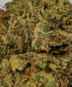 Galactic Gas is a rare slightly indica dominant hybrid strain (60% indica/40% sativa) created through crossing the classic Gelato #45 X Gushers strains. Even with parents like these, Galactic Gas has a surprisingly pungent and skunky aroma of heavy diesel and gas that will clear any room. The flavor is remarkably similar, with a spicy skunky overtone that’s accented by heavy pungent earth and herbs. The Galactic Gas high is just as intoxicating as its scent, with calming yet creative effects that will have your mind soaring high while your body settles into a pleasant heaviness. You’ll feel a sense of happiness wash over you a few minutes after your final toke, easing away any negative or racing thoughts almost immediately. A light physical tingle comes next, building in intensity before dropping your limbs into a super heavy state that leaves you pretty couch-locked and immovable. With these sleepy effects and its high 23-28% average THC level, Galactic Gas is often said to be perfect for treating conditions such as chronic pain, insomnia, muscle spasms or cramps, spasticity and arthritis. This bud has small rounded colorful emerald green nugs with deep purple undertones, bright yellow-orange hairs and a frosty thick coating of golden amber crystal trichomes.