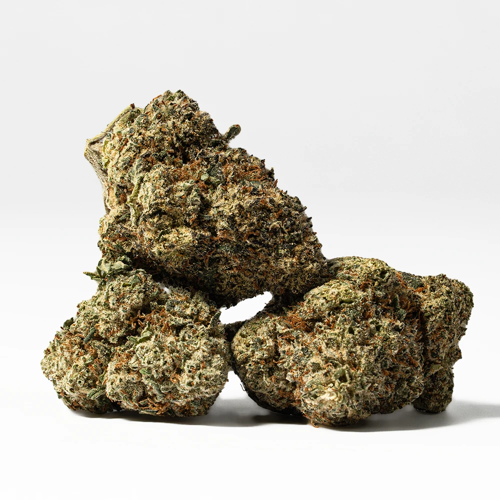 Waffle Cone is an indica dominant hybrid strain (70% indica/30% sativa) created through crossing the delicious Jet Fuel Gelato X Dosilato strains. Named for its delicious flavor and summertime high, Waffle Cone is a great choice for any classic indica lover. Like its name suggests, this bud has a super nutty and sweet creamy sugary flavor with hints of fresh cherries and sweet fruity berries, too. The aroma is very similar, with a fresh bouquet of sweet fruits and a touch of creamy nuttiness. The Waffle Cone high is one that’s perfect for a lazy day spent at home, with soothing and calming effects that will have your mind feeling at ease while your body becomes heavy and couch-locked. You’ll feel lifted with a stimulating sense of euphoria that instantly pushes out any negative or racing thoughts. At the same time, a physical tingle will creep into your body, leaving you feeling totally stimulated and completely relaxed from head to toe. In combination with its high 26-30% average THC level, these effects make Waffle Cone perfect for treating chronic pain, muscle spasms or cramps and inflammation. This bud has rounded dark olive green nugs with thick orange hairs and frosty milky white crystal trichomes.